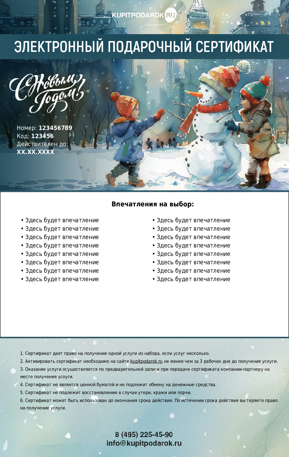 Использовать сертификат необходимо в рамках срока его действия (1 год с момента продажи), который будет указан на самом сертификате.