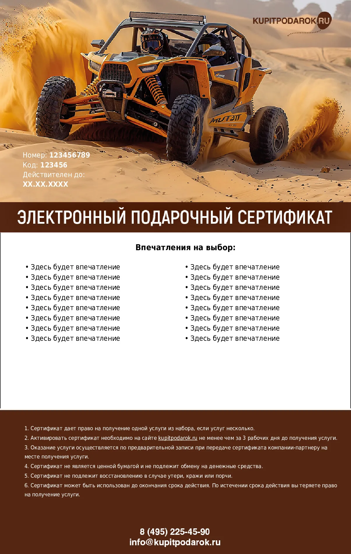 Получатель подарка выбирает одно из предложенных впечатлений. Ничего доплачивать не нужно.