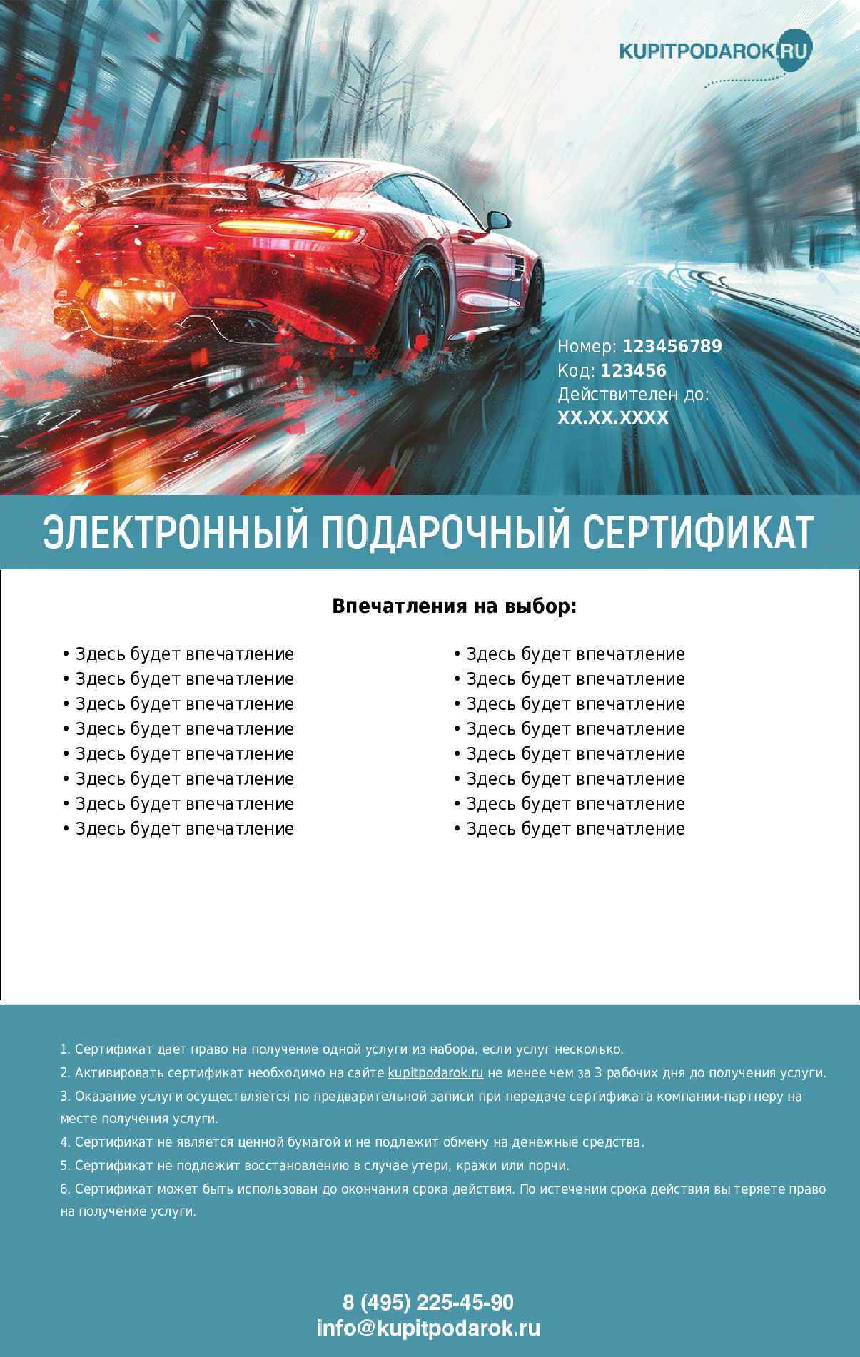 Получатель подарка выбирает одно из предложенных впечатлений. Ничего доплачивать не нужно.