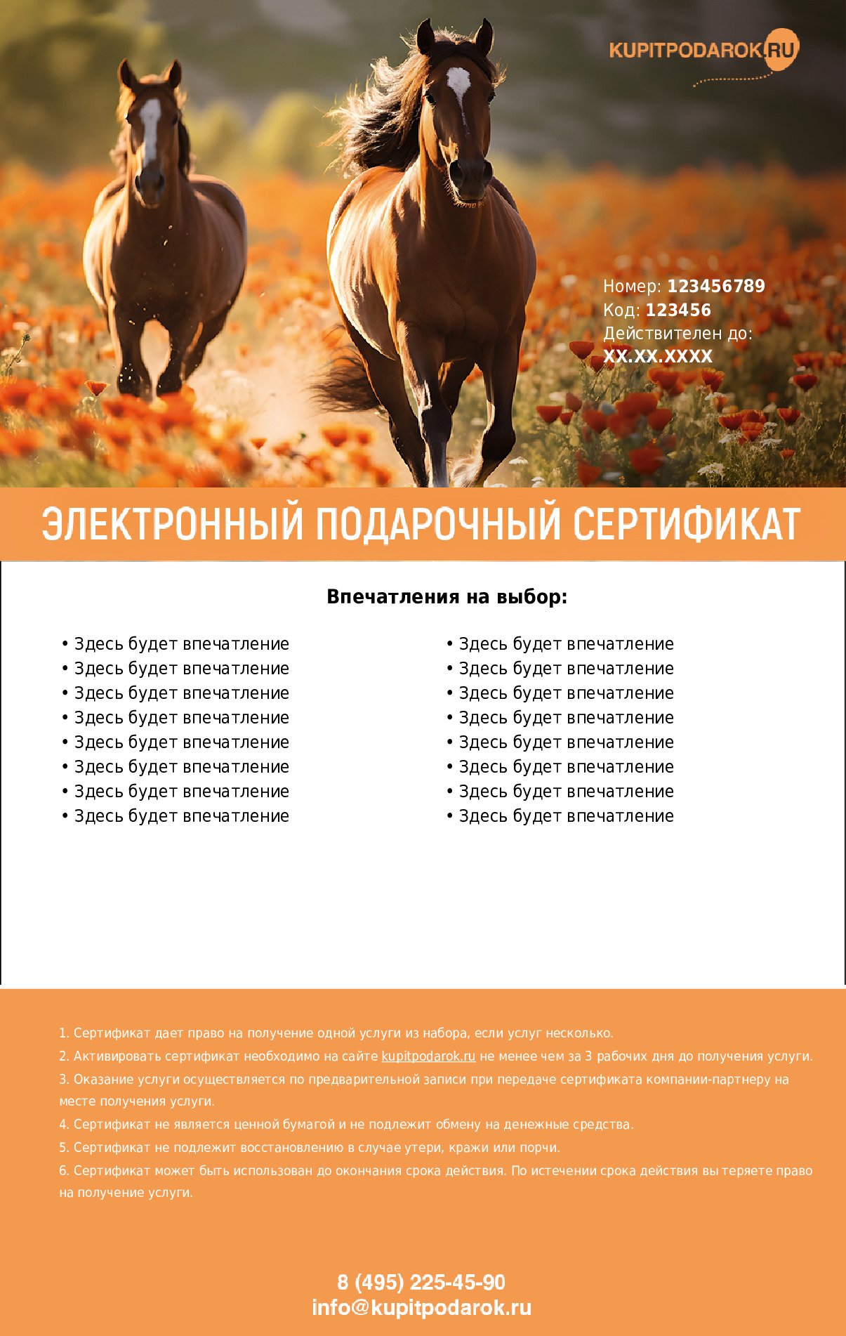 Использовать сертификат необходимо в рамках срока его действия (1 год с момента продажи), который будет указан на самом сертификате.