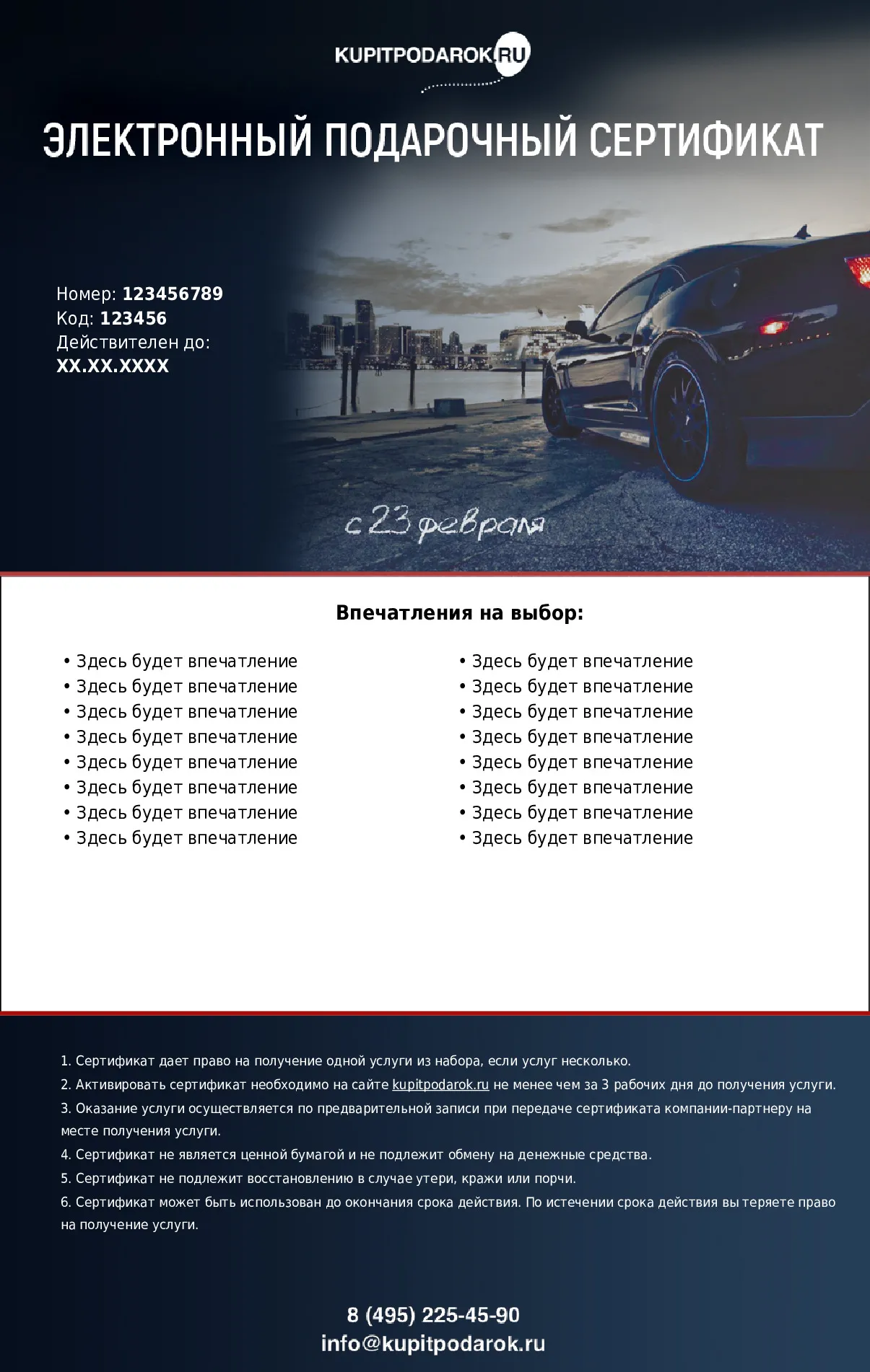 Получатель подарка выбирает одно из предложенных впечатлений. Ничего доплачивать не нужно.