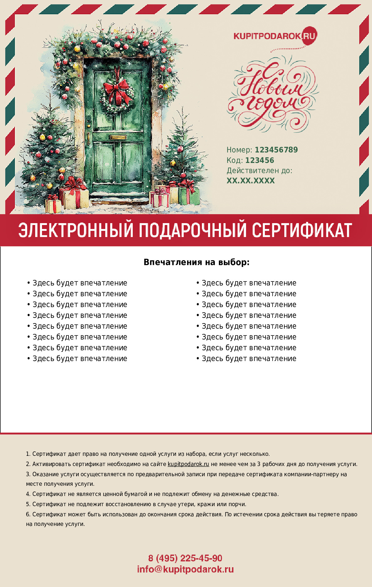Получатель подарка выбирает одно из предложенных впечатлений. Ничего доплачивать не нужно.