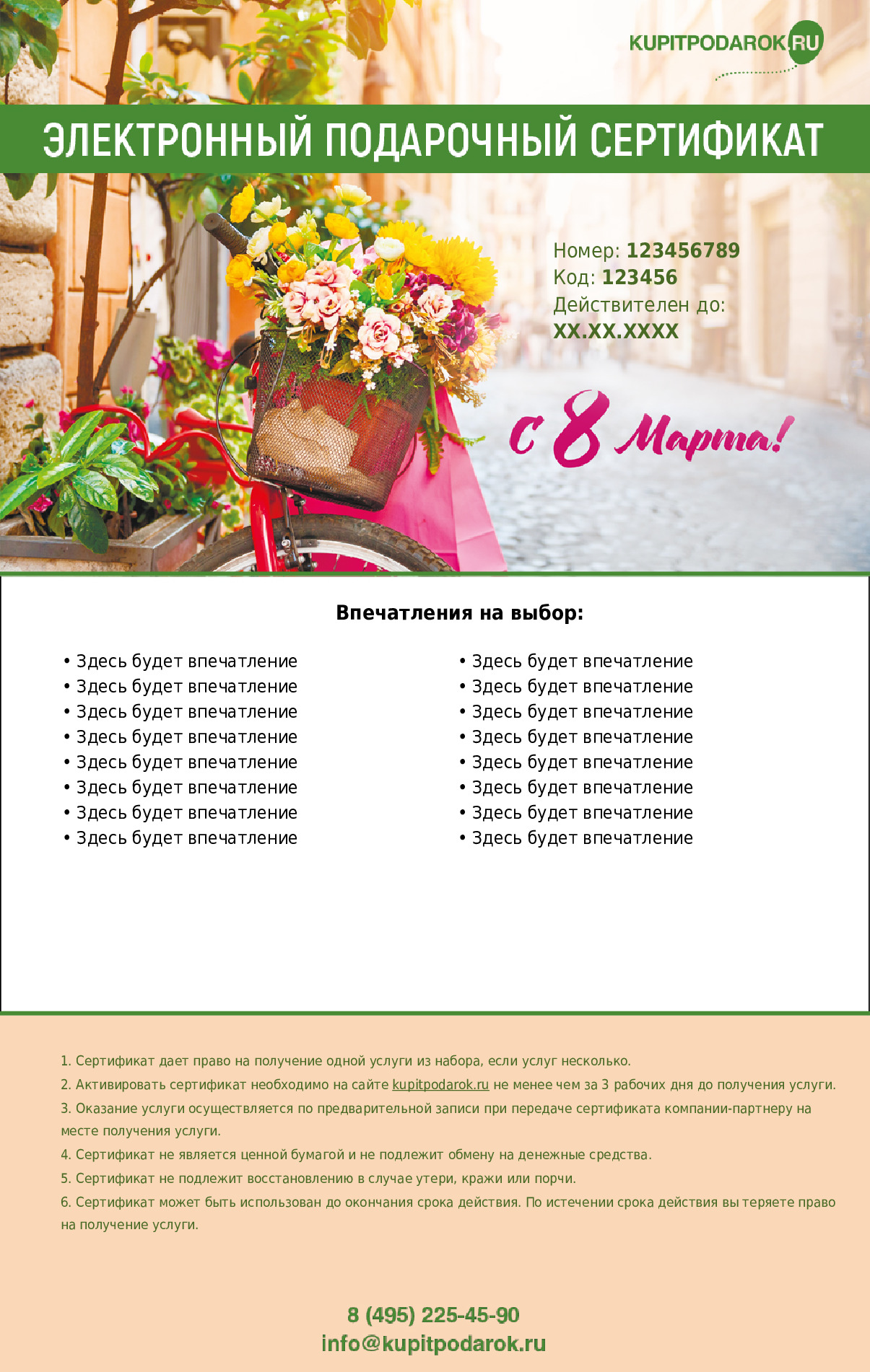 Использовать сертификат необходимо в рамках срока его действия (1 год с момента продажи), который будет указан на самом сертификате.