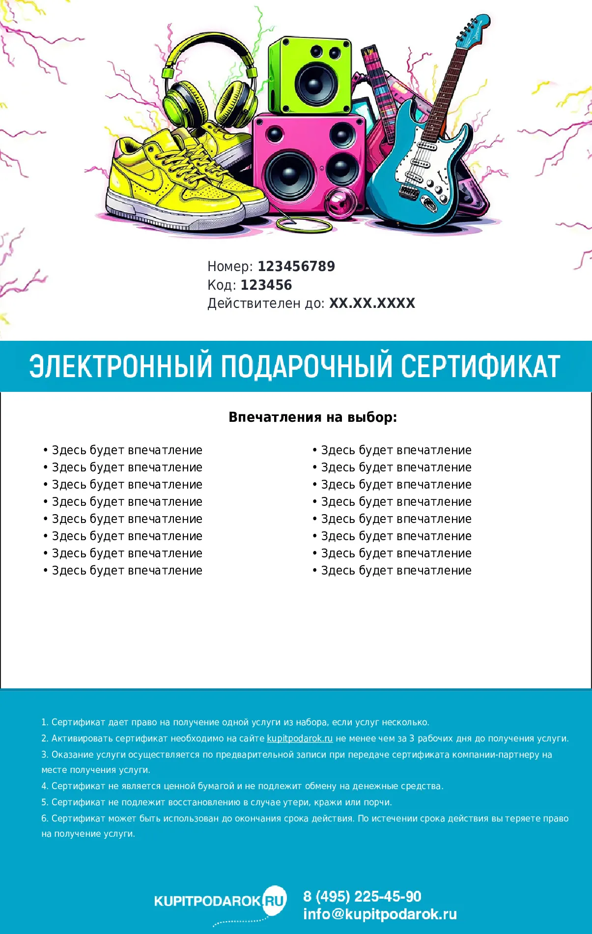 Сертификат неименной, поэтому при оформлении заказа лучше указать свои данные, в том числе электронную почту. Именно на указанную почту придет письмо с чеком об оплате и письмо с сертификатом.